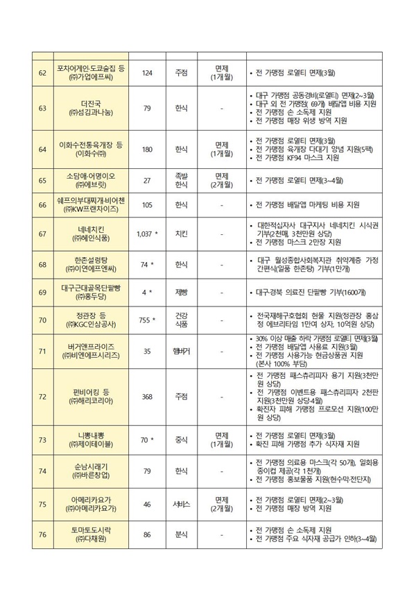 □ 한국프랜차이즈산업협회 회원사 상생 지원책 현황(3.23)